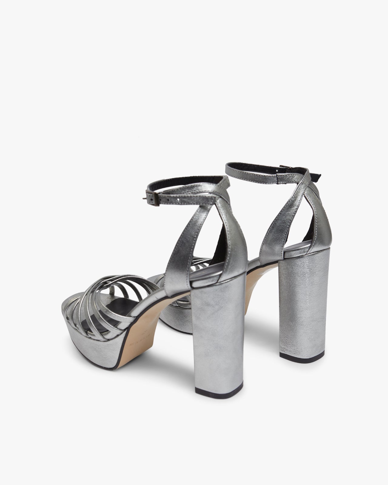 Sandalia de tacón ancho con detalle de tiras. Cierre de pulsera con hebilla en el tobillo. Tiene la planta muy acolchada para mayor confort.