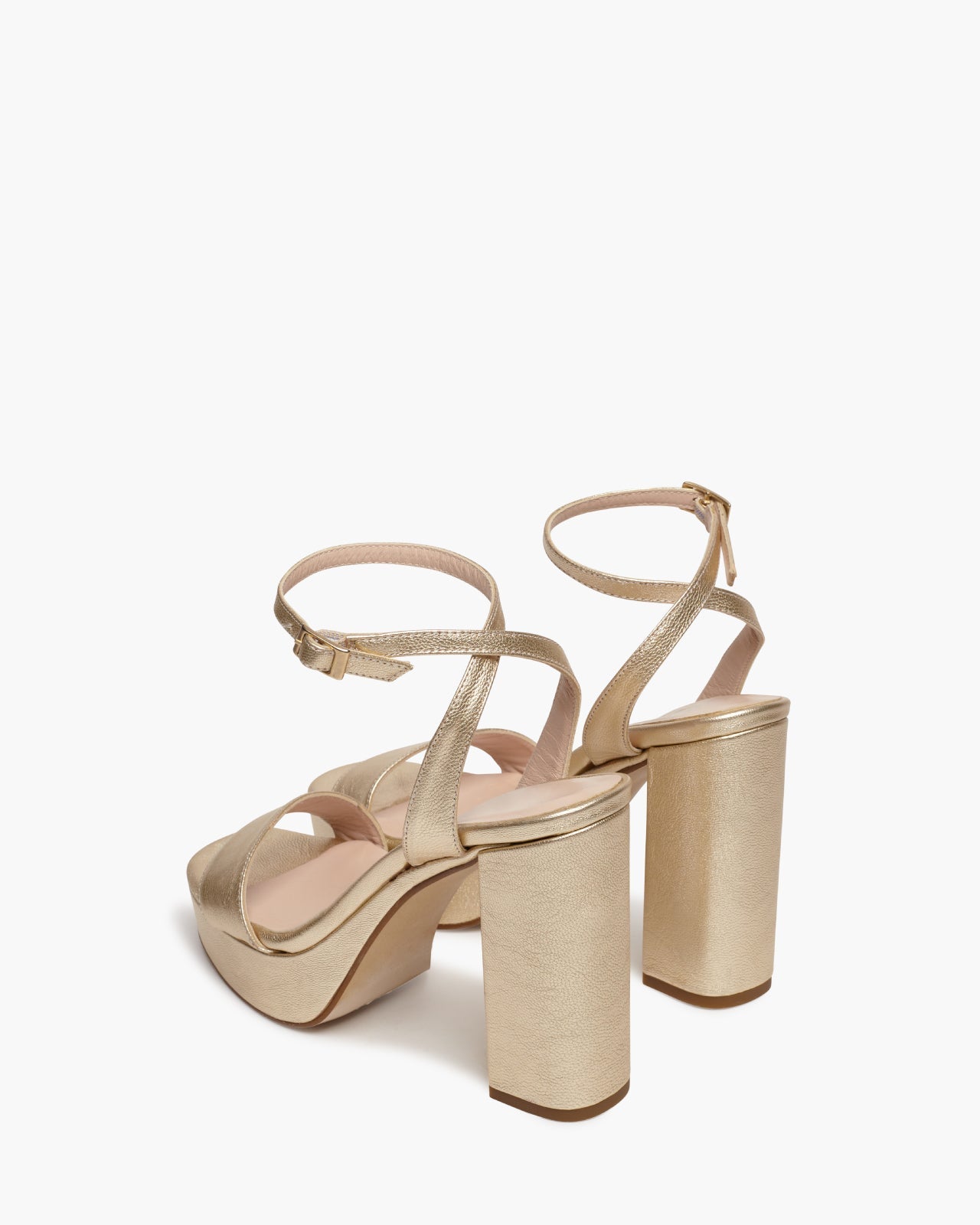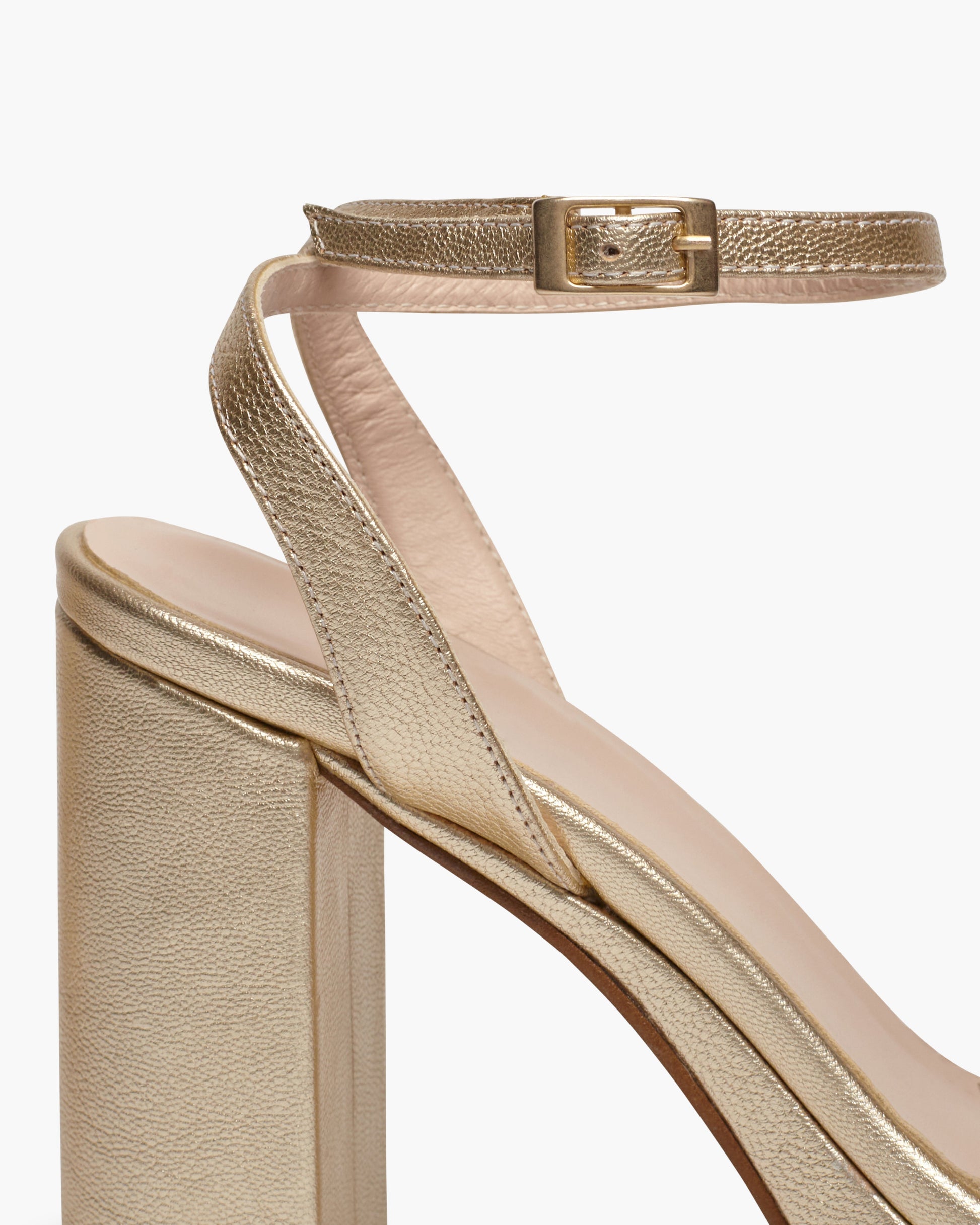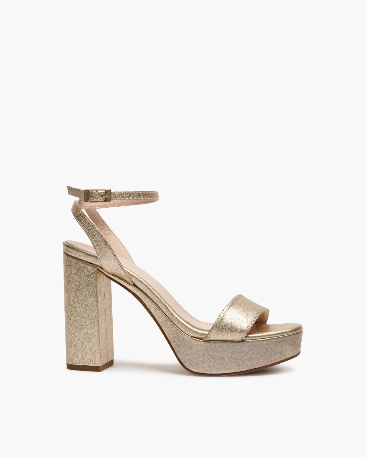 Sandalia de tacón ancho con plataforma. Cierre de pulsera con hebilla en el tobillo. Tiene la planta muy acolchada para mayor confort.