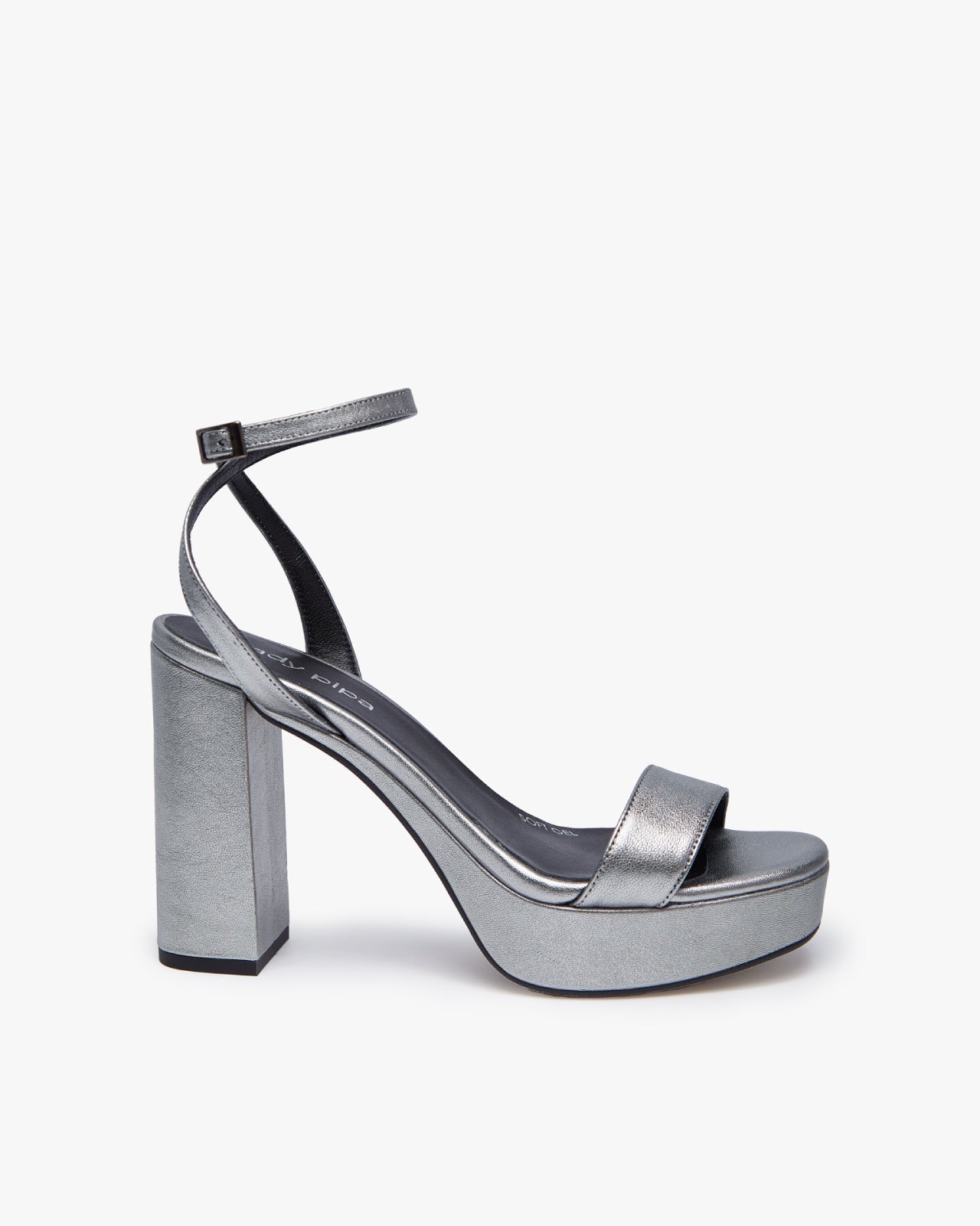 Sandalia de tacón ancho con plataforma. Cierre de pulsera con hebilla en el tobillo. Tiene la planta muy acolchada para mayor confort.